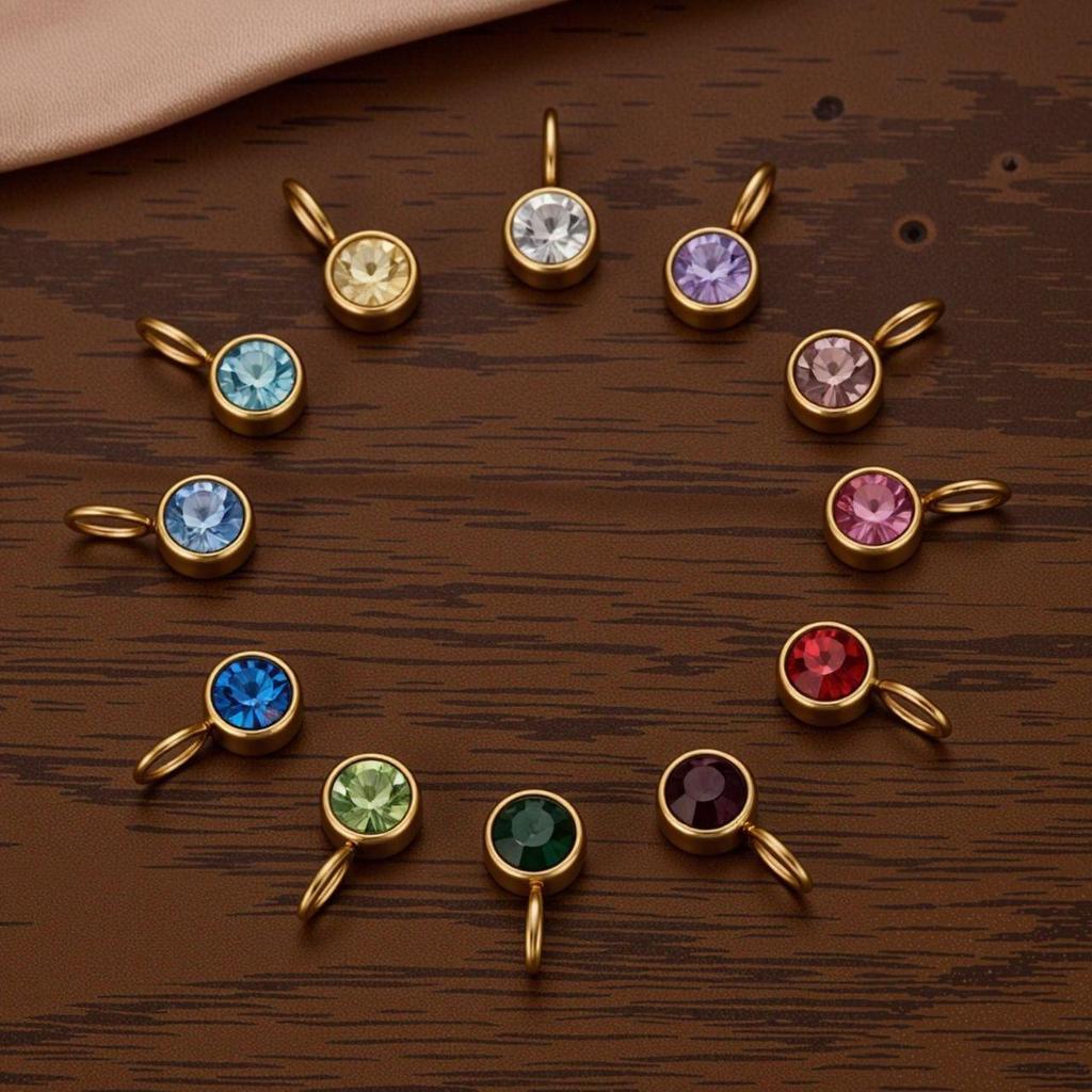 Polished Stainless Steel Birthstone Pendant with Vacuum Electroplating and Retro Design