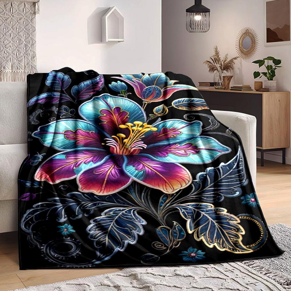 1pc Fantasy Flower Blanket Lightweight Flannel Blanket Throw Blanket For Sofa, Bed, Travel, Camping, Livingroom, Couch, Chair, And Bed yy2509026185