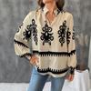 La camisa para mujer presenta un tejido de gasa fluido con un diseño de manga caída que difumina sutilmente la línea del hombro, proporcionando un ajuste favorecedor para todas las formas de cuerpo.. Adornado con impresión digital de alta precisión, muestra intrincados patrones florales y vegetales con transiciones de color naturales tanto en tejidos de base oscuros como claros, añadiendo profundidad y elegancia..