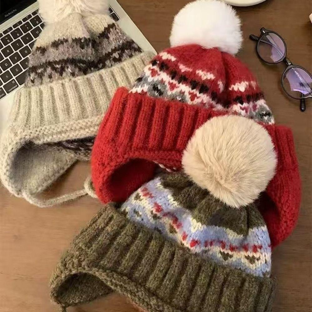 Printed Fair Isle Style Beanies Wool Ear Protection Hat Fashion Jacquard Knitted Hat Outdoor