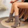 Nuevas botas cortas negras de tacón alto puntiagudo para mujer, botas de primavera y otoño de una sola capa, tacones finos puntiagudos, botas finas elásticas de talla grande de comercio exterior