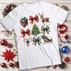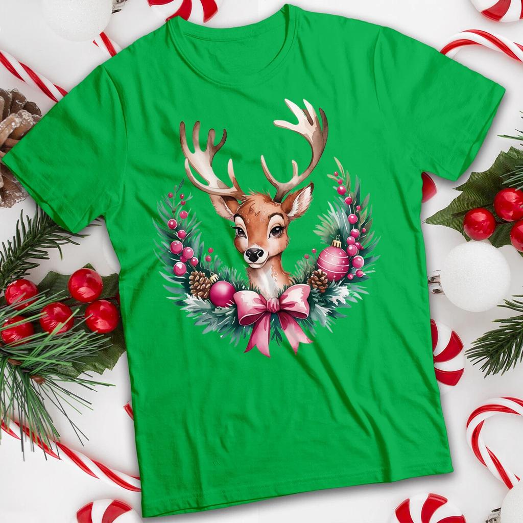 Womens Reindeer With Pink Bow Greenery Christmas T-Shirt Tee #MC