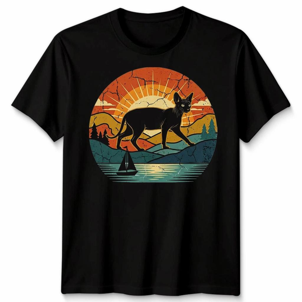 Sphynx Cat Retro Sunset Animals Graphic Tee Men’s T-Shirt Women’s Top
