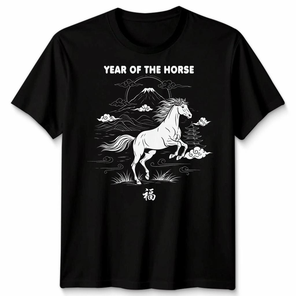 Year of the Horse Mens Womens T Shirt Asian Graphic Lunar Tatto Style Streetwear