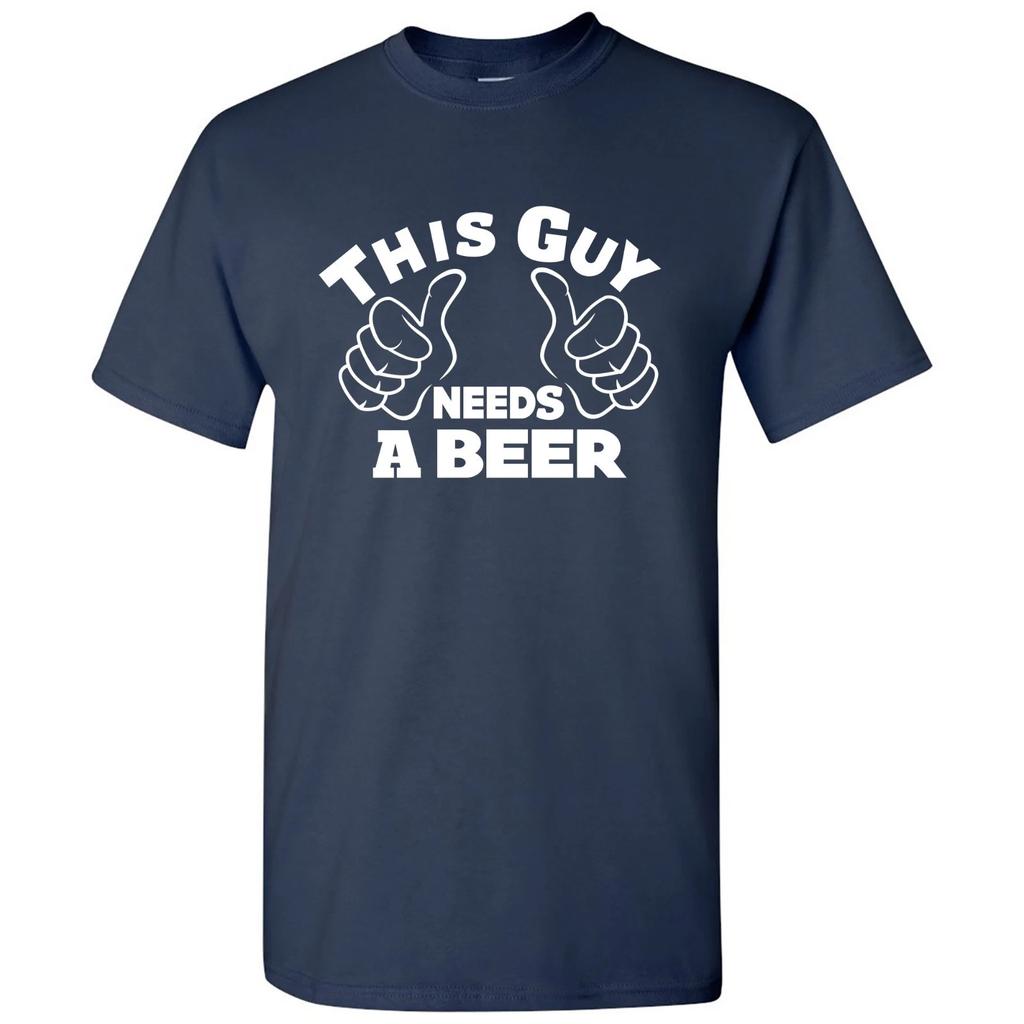 This Guy Needs a Beer - Funny Unisex Drinking Short Sleeve T-Shirt - Navy