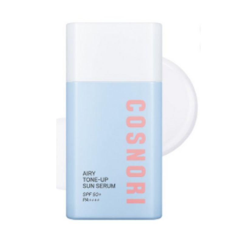 COSNORI, Airy Tone Up Sun Serum, tone up sunscreen Korean, brightening sun serum, SPF50 PA++++ sunscreen, radiant finish sunscreen, lightweight sunblock, daily tone up care