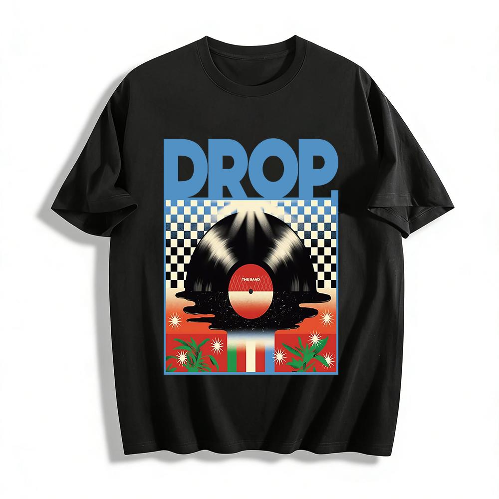 Vintage Band Vinyl Record Print T-shirt Unisex Trendy Casual Loose Short Sleeve Top Pure cotton T-shirt