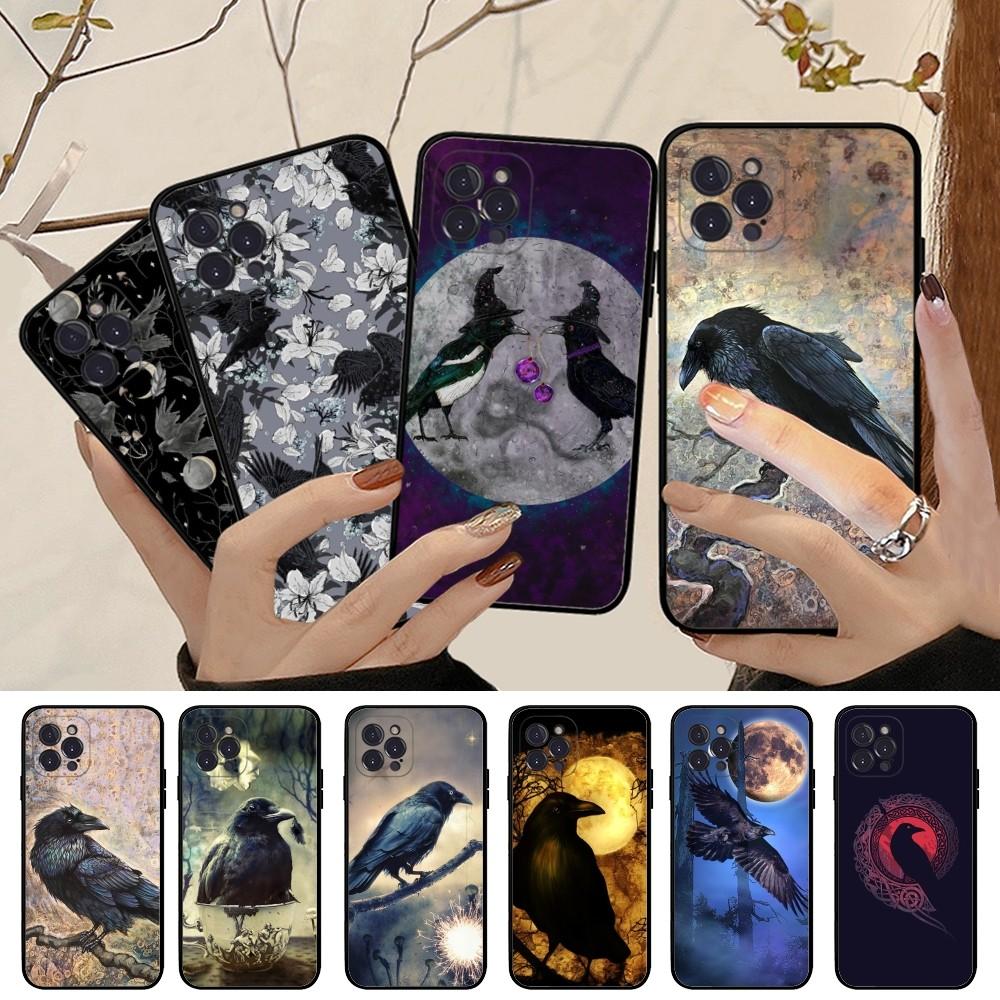 Raven Pattern Phone Case For iPhone 15 14 11 12 13 Mini Pro XS Max Cover 6 7 8 Plus X XR SE 2020 Funda Shell
