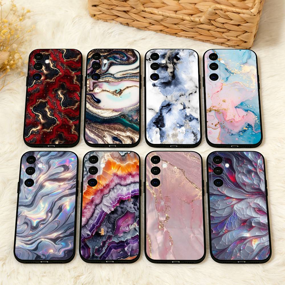 G-Glitter Art Marble Pattern Phone Case For Samsung A73,72,71,A52,51,40,41,A22,A32,31,A13, Soft Black Shell