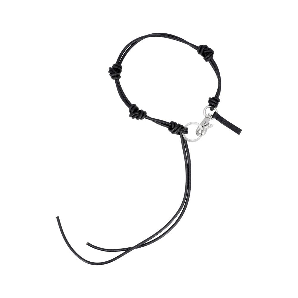 The Our Legacy A4258UB Radon Udonn Black Keychain Leather Necklace is a fashion accessory crafted from high-quality leather. This product features both keychain and necklace functionalities, characterized by a sleek black color design. Made from natural leather, it boasts outstanding durability and showcases an exquisite finish through meticulous dyeing treatment.
