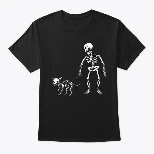 Halloween Skeleton Dog Walker Tee T shirt