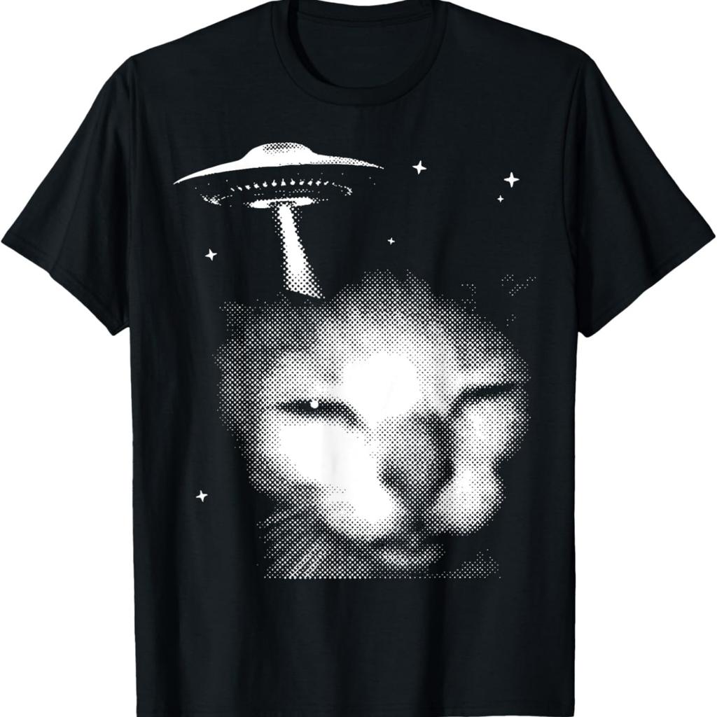 Alien Cat Meme UFO Vintage Graphic Tee Y2K Funny Silly Cat T-Shirt
