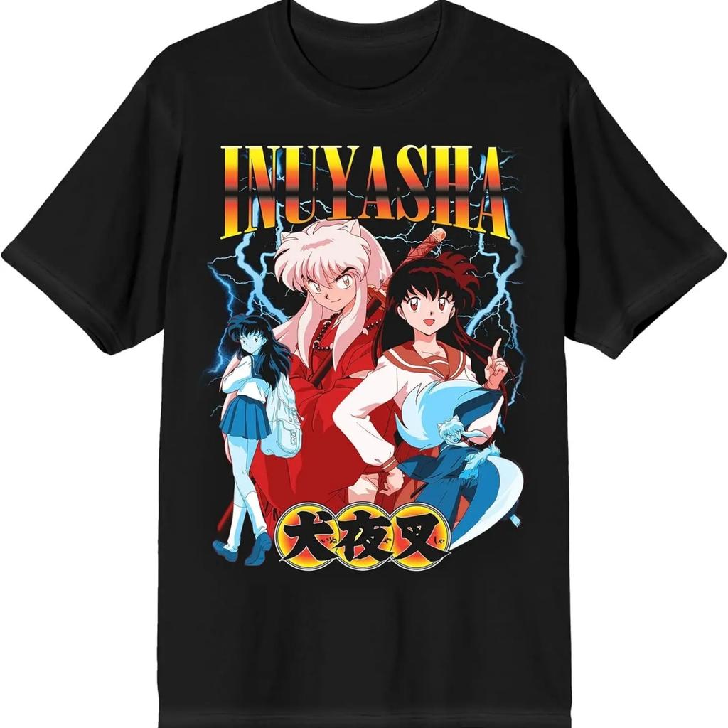 Camiseta Negra de Manga Corta con Cuello Redondo para Hombre Bioworld Inuyasha Kagome e Inuyasha