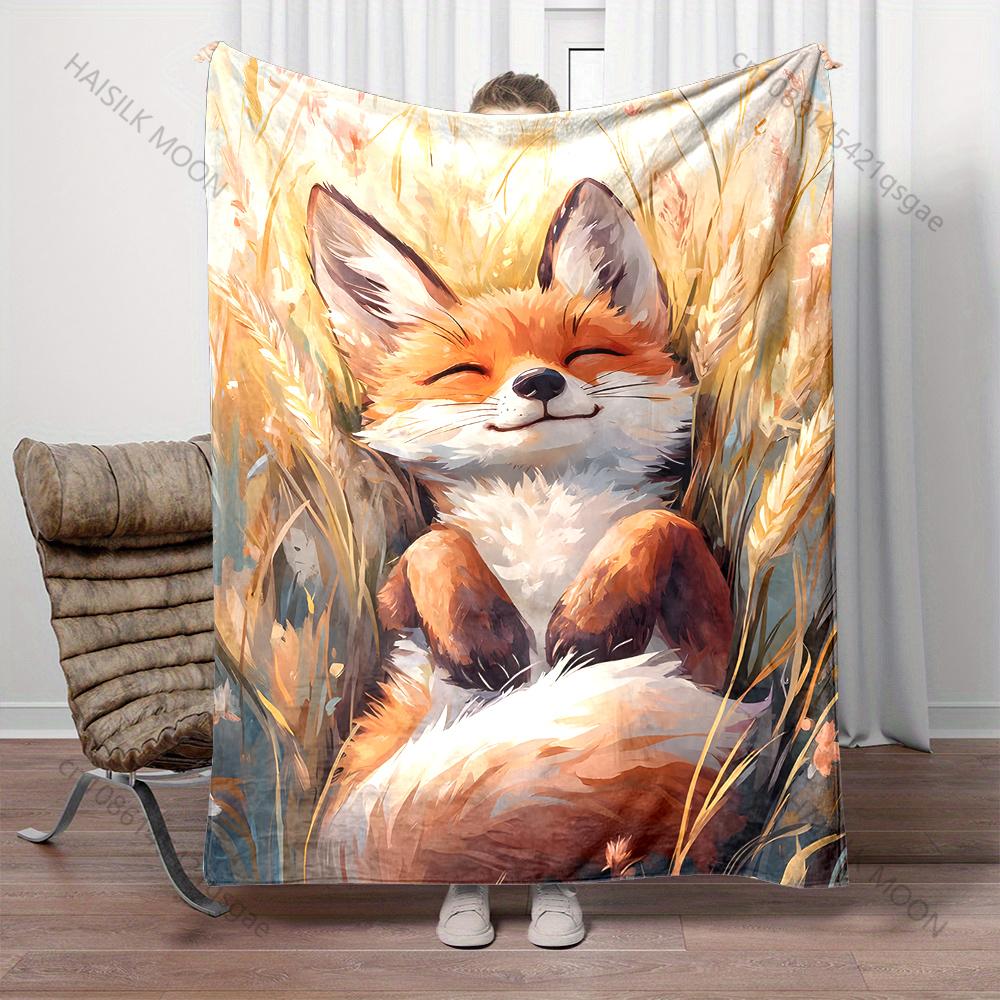 Fox resting in golden grass Print Adult Children Warm Blankets Home Travel Car Soft and Comfortable Suitable for all seasons