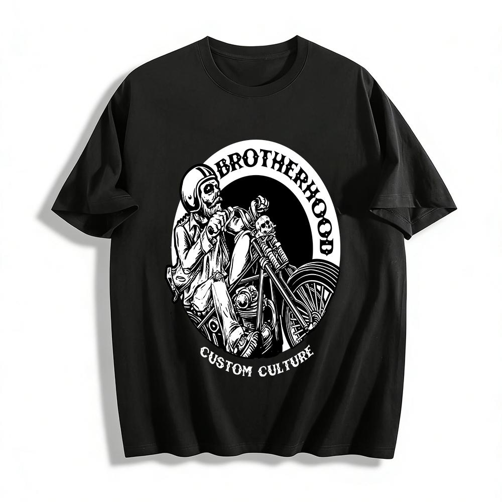 Brotherhood Skull Biker Graphic Tee Cool Motorcycle Rider Print T-Shirt Pure cotton T-shirt