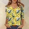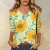 Women's Fashionable Casual V-Neck Three-Quarter Sleeve Printed T-Shirt Top