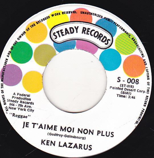 7inch Record KEN LAZARUS Je Taime Moi Non Plus Youre Gon S008 Steady Records US Reggae Ska Dub Used