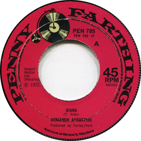 7inch Record BENJAMIN AUGUSTINE Diana PEN785 Penny Farthing 1972 UK Reggae Ska Dub Used