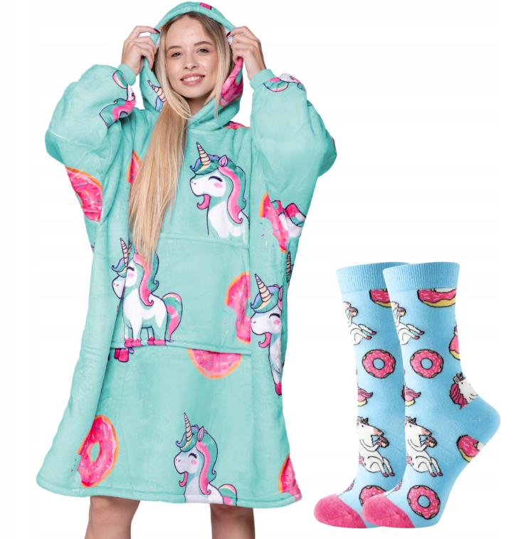 KOC BLUZA Oversize Ciepła Gruba KOCOBLUZA 2w1 XXL UNICORN + SKARPETKI [KB-S6]