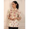 Blue Floral Print Mandarin Collar Cotton Top