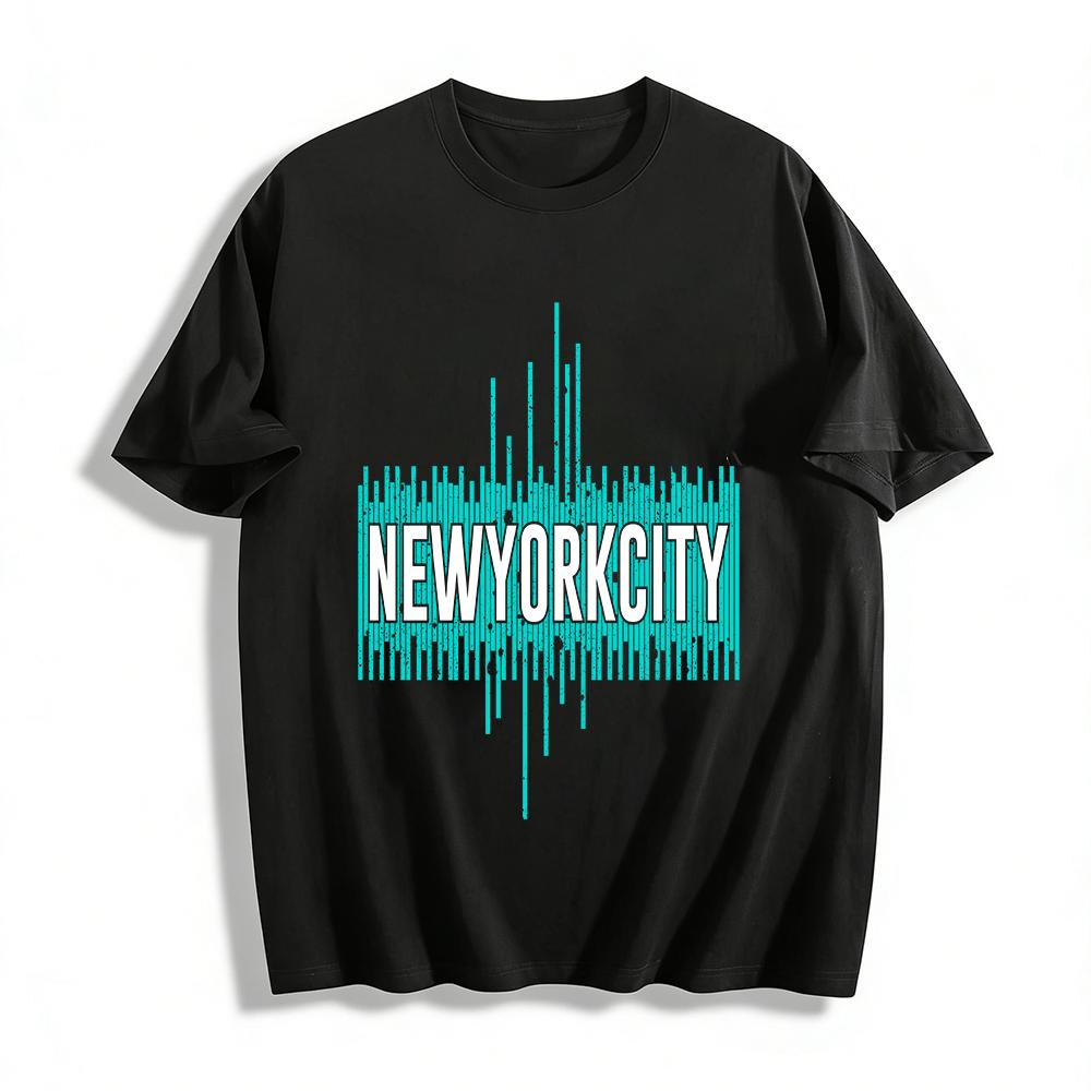 Trendy NEWYORKCITY Sound Wave Print Casual Crew Neck T-Shirt Pure cotton T-shirt
