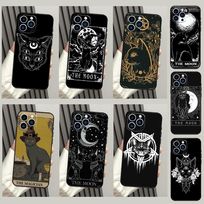 Moon Tarot Witch Cat Case For iPhone 16 15 11 12 13 14 Pro Max Plus XS X XR 12 13 Mini Back Cover