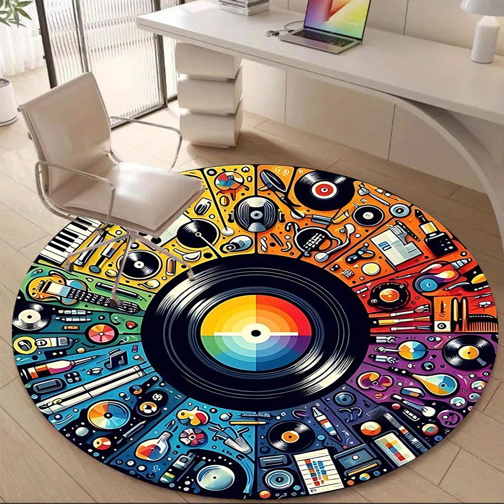 1pc Music Instruments Office Round Area Rug, Indoor Mat Suitable ForOffice, Under Office Chairs Bedroom Living Room Home Decor, Room Deco T134