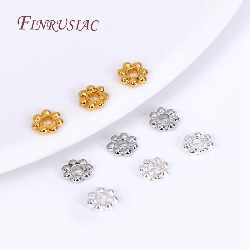 DIY Beading Jewelry Making Supplies 4/5/6MM 18K Gold Plated Flower Caps For Beads Brass Metal Snowflake Beads Spacer