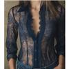 Net Weave Printed Sexy Lace-edged Sheer Blouse