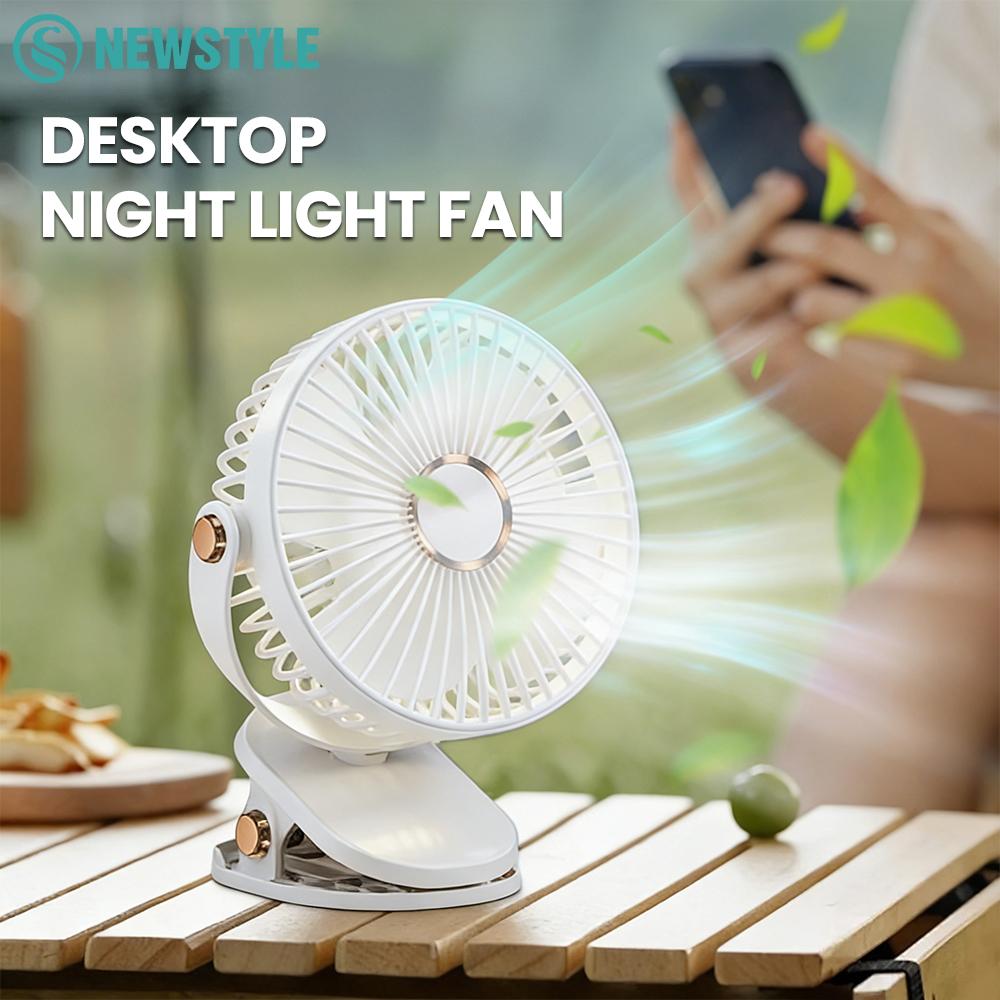Home Portable Mini Desktop Fan USB Rechargeable Fan 5-Speed Wind and LED Light 360° Rotation 6 Inch Quiet Fan for Bedroom Office