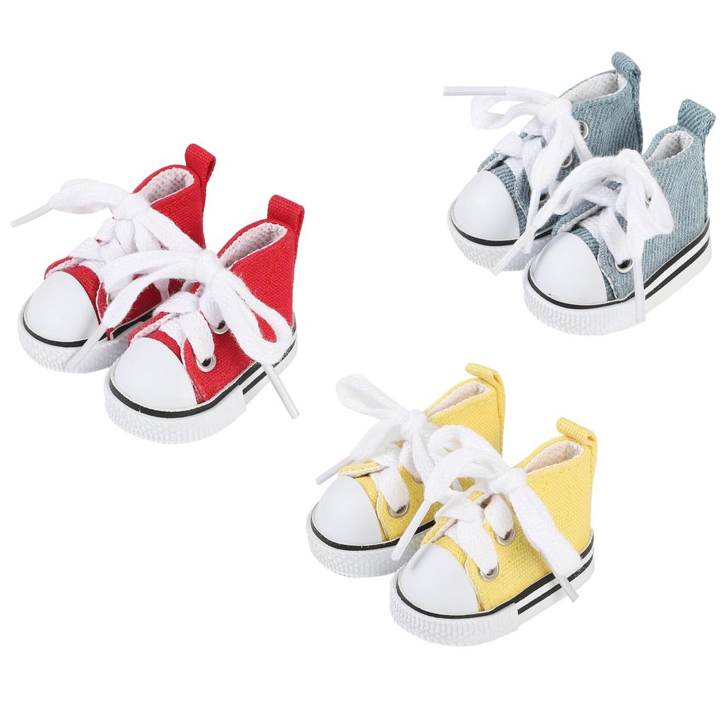 AXLUCE Plush Toy - Shoes - Plush Clothes - 20cm Canvas Shoes High-Top Sneakers Doll (Yellow, Red, Blue Denim)