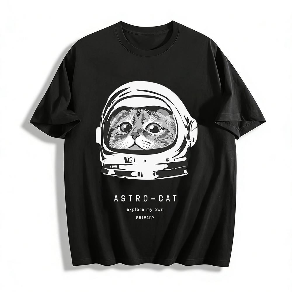 Cute Space Cat Print Casual T-Shirt Unisex Trendy Fun Top Pure cotton T-shirt