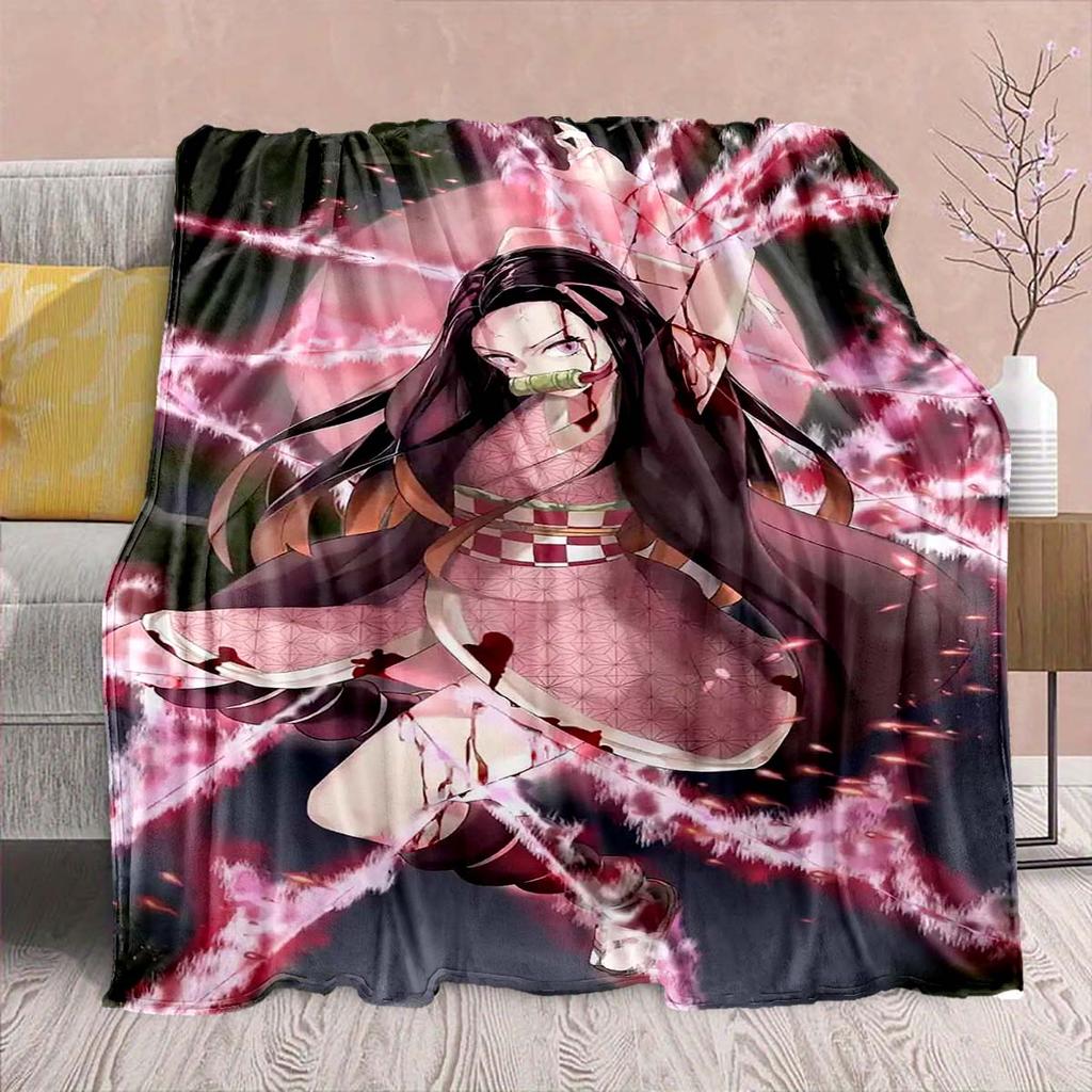 Demon Slayer Anime Flannel Blanket - Soft Warm Perfect for Sofa, Bedding Camping Travel Office Home Decor -QJY