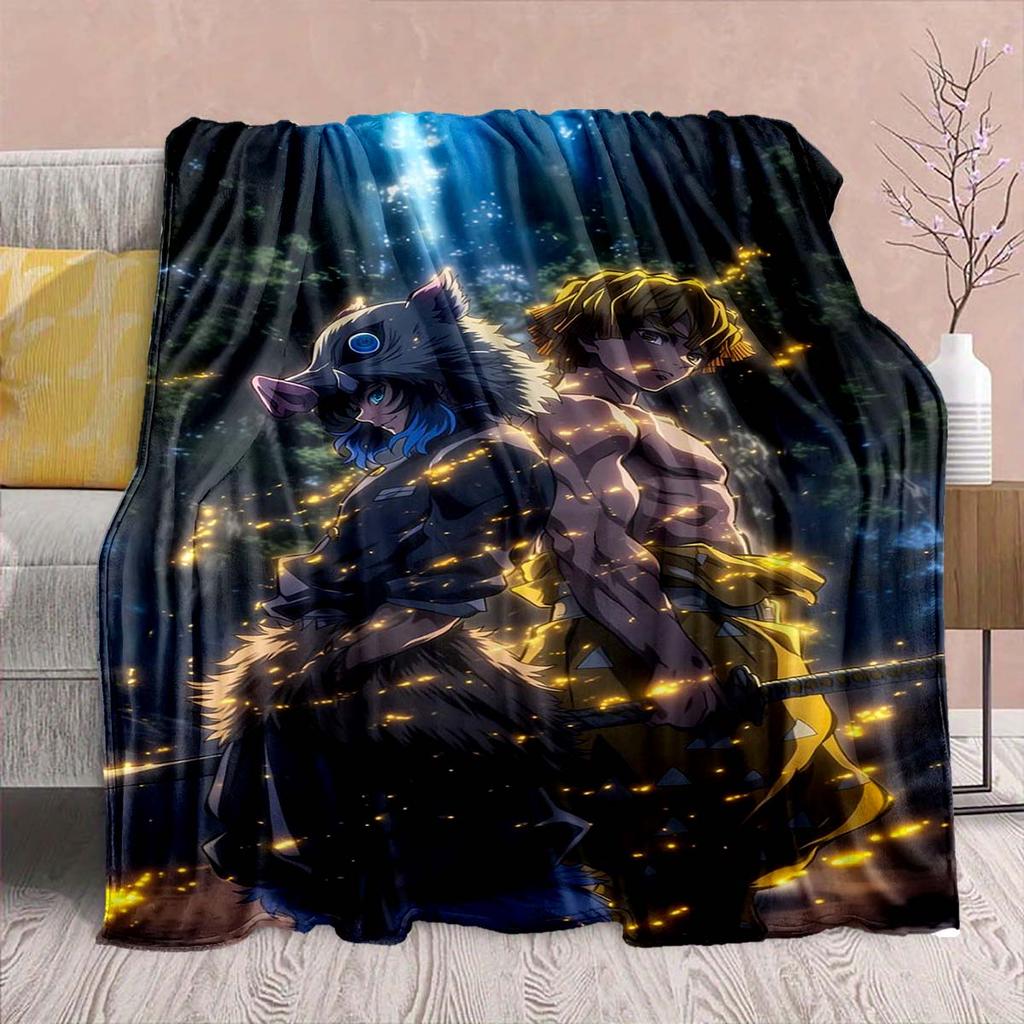 Demon Slayer Anime Flannel Blanket - Soft Warm Perfect for Sofa, Bedding Camping Travel Office Home Decor -QJY