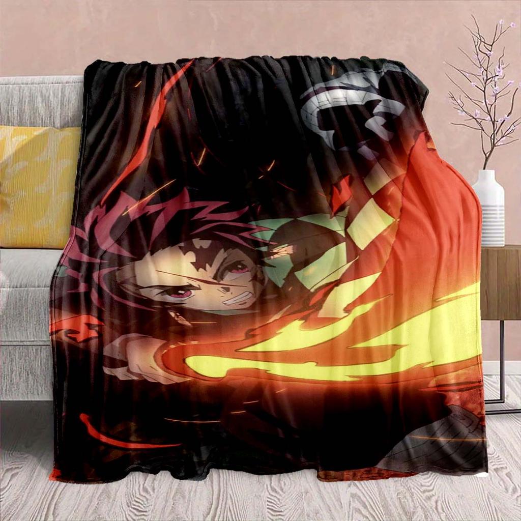 Demon Slayer Anime Flannel Blanket - Soft Warm Perfect for Sofa, Bedding Camping Travel Office Home Decor -QJY