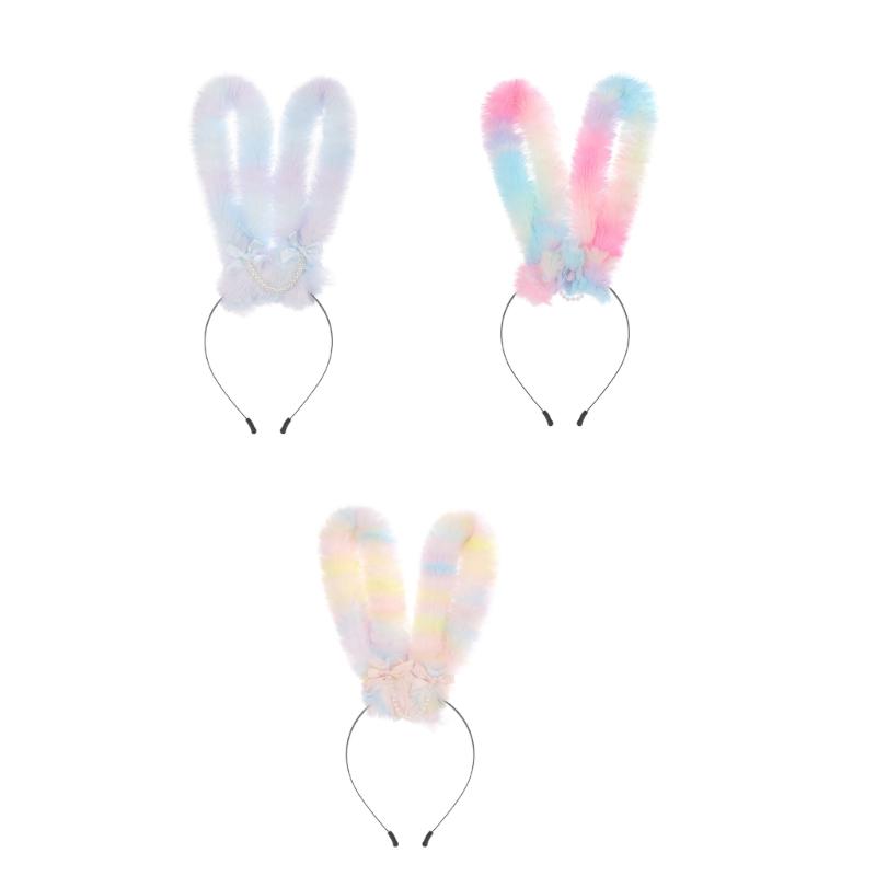 Furry Rabbits Ears Headband With Gradient Color Costume Hairbnad Fashion Hairpiece For Cosplay And Easter Parties