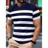 Men's Classic Wide Stripe T-shirt - Navy Blue and White Casual Short Sleeve Round Neck Summer Top