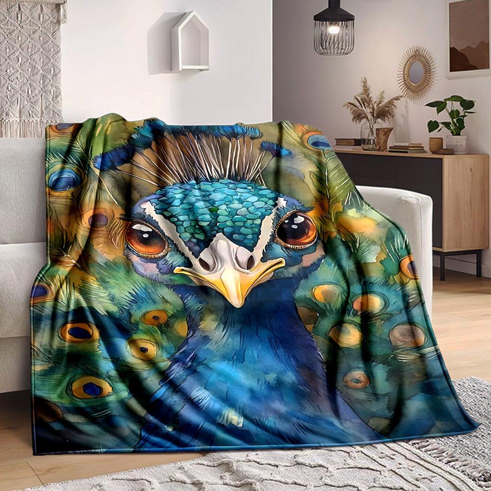 1pc Peacock Illustration Blanket Lightweight Blanket Throw Blanket For Sofa, Bed, Travel, Camping, Livingroom, Office yy251010037