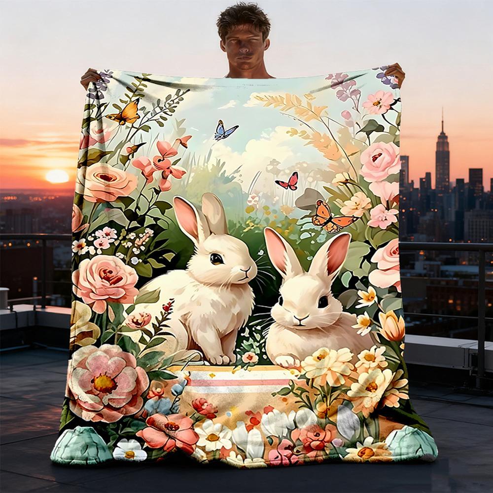 1pc Easter Bunnies Outdoor Blanket - Soft Flannel Cozy for Travel & Camping - All-Season Warm Bed Cover, Machine Washable yy251229064