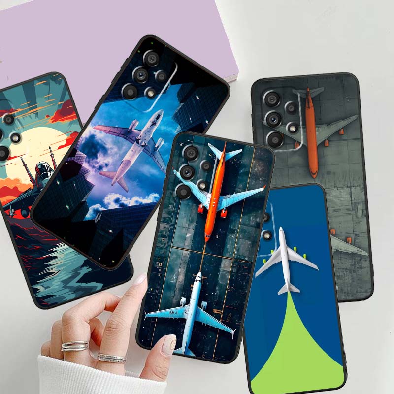 Fashion airplane pattern For Samsung A73 A72 A71 A55 A54 A53 A52 A51 A13 A22 A16 A15 A12 A14 A26 A07 5G Black Phone Case
