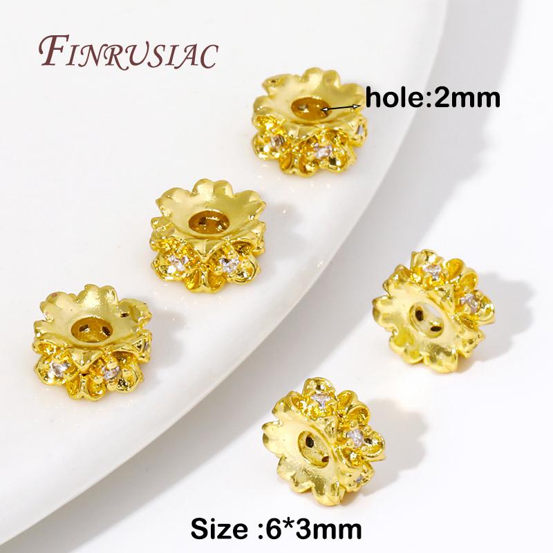 Fashion Inlaid Zircon Flower Spacer Beads 18K Real Gold Plated Separators For Beads Jewelry Making DIY Bracelet Accessories