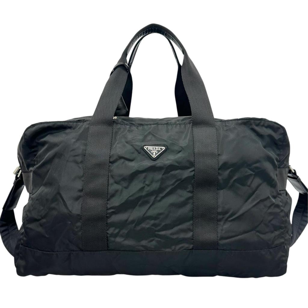 Beauty products PRADA Triangle logo Boston bag Nylon black unisex【used】