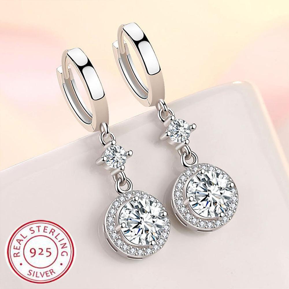 925 Sterling Silver Ear Needle Fashion Hoop Earrings White Crystal Luxury Women's Silver Earrings Wedding Women's Jewelry Gift
