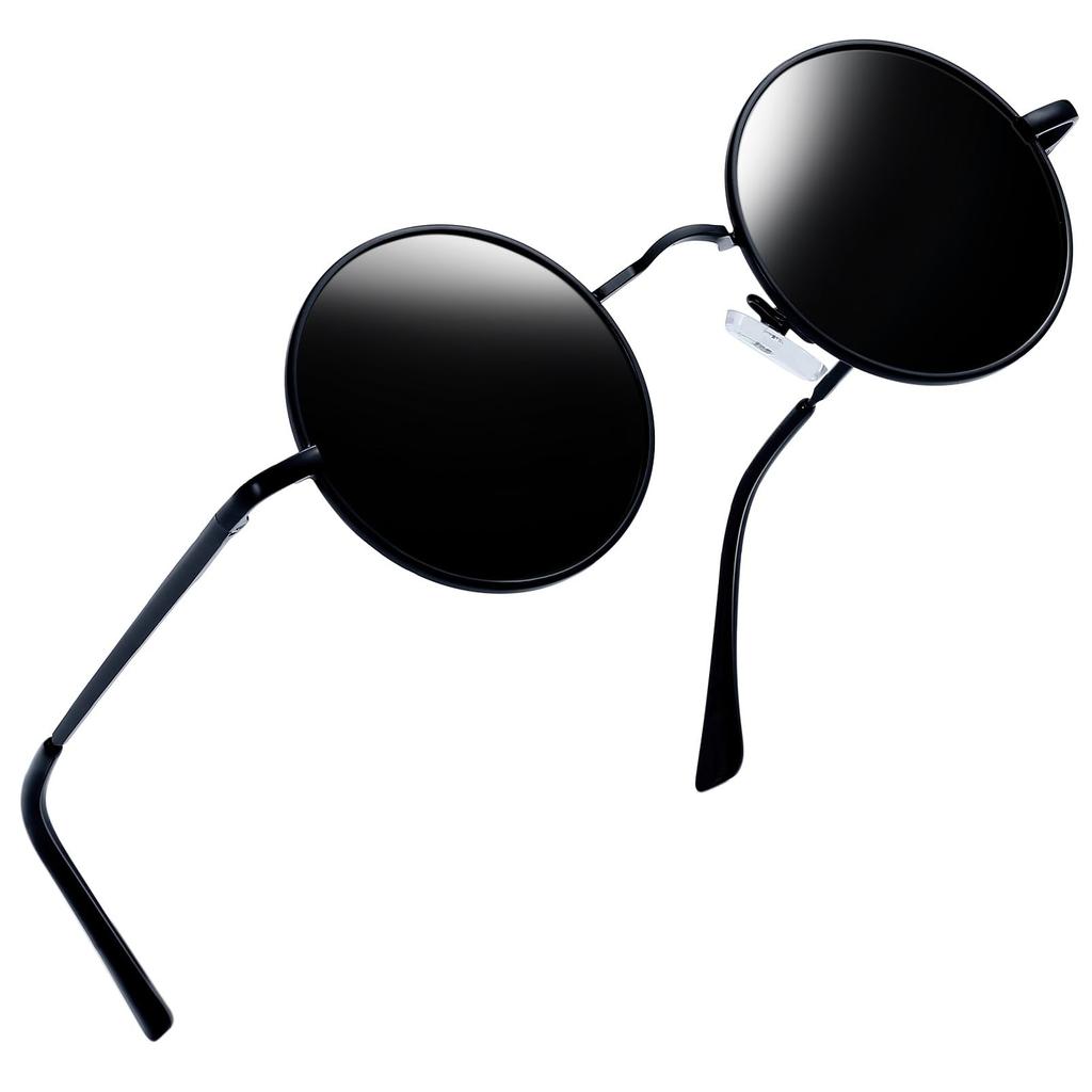 [Joopin] Men's Polarized Round Sunglasses with UV400 Protection, Lightweight, Suitable for Fishing, Driving, and Hiking (BlackBlack)