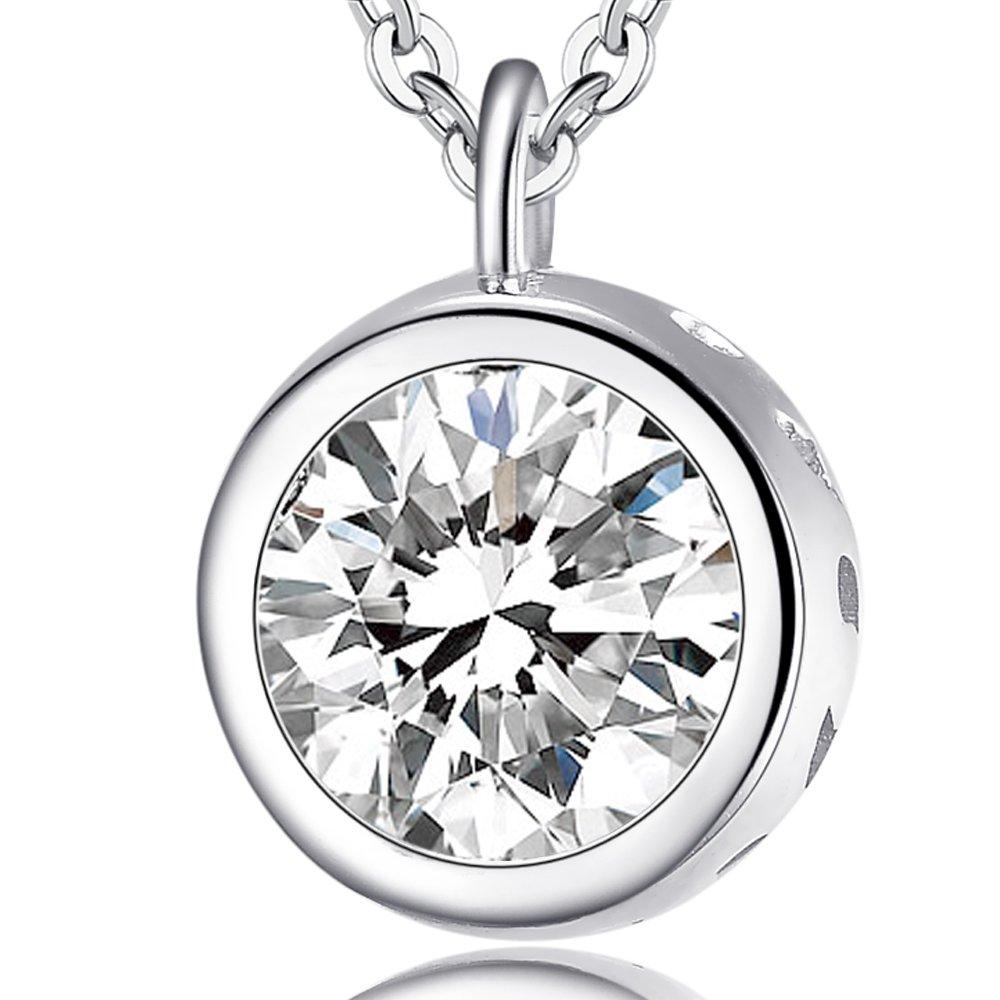 Ashley Jewelry Single Stone Necklace, Sterling Silver 925, Simple Pendant, Cubic Zirconia, Women's, Everyday Wear