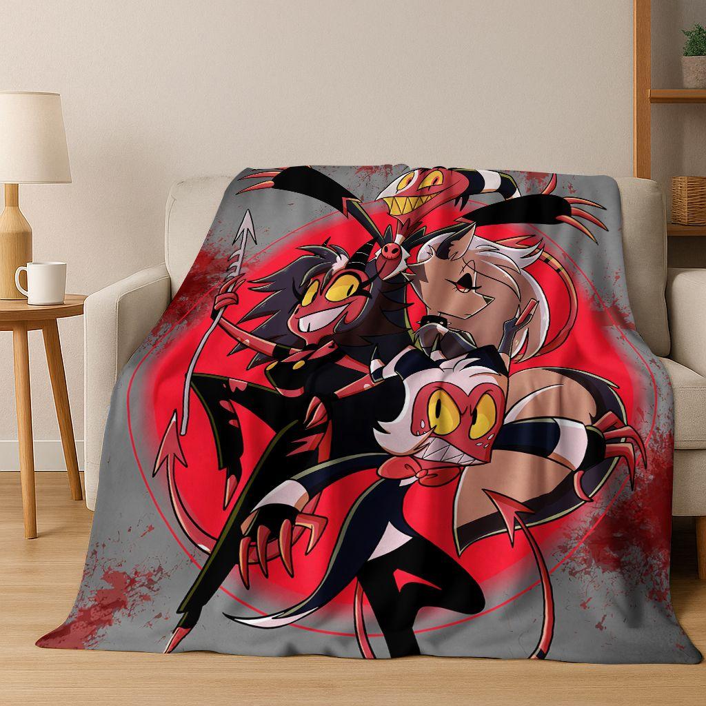 3D H-Helluva Boss Blitzo H-Hazbin Hotel Cartoon Flannel Blanket,Cozy Soft Throw Blanket for Home Bedroom Bed Sofa Cover Gift Kid