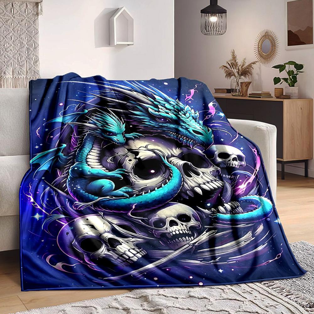 1pc Dragon Skulls Lightweight Flannel Blanket, Comfortable and Warm Blanket, for Office and Camping Sofa Bed, Livingroom192