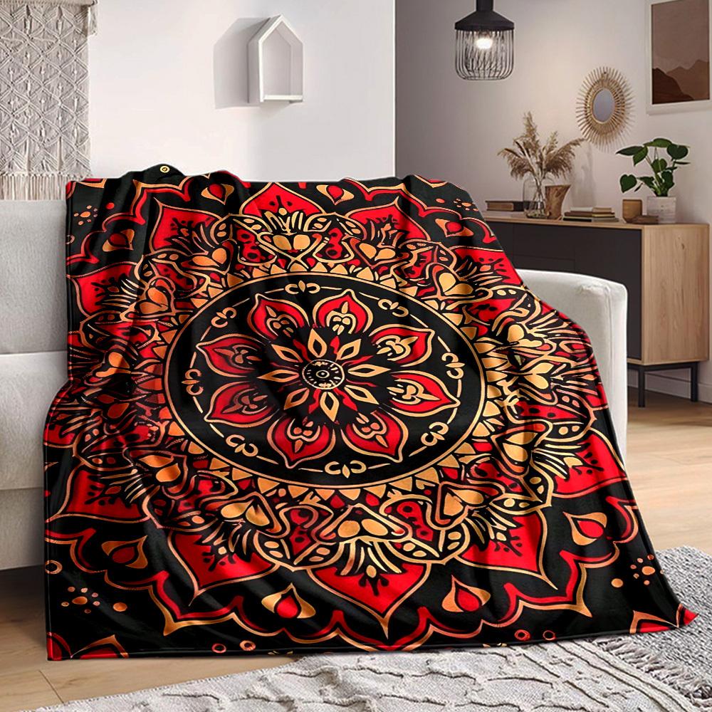 1pc Mandala Pattern Print Blanket Lightweight Flannel Throw Blanket For Sofa, Bed, Living Room Office, Outdoor Travel, Camping, Soft All-Season Throw