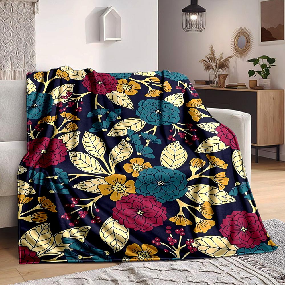 1pc Floral Pattern Blanket, Lightweight Flannel Throw Blanket for Sofa, Bed, Travel, Camping, Living Room, Office, Couch064