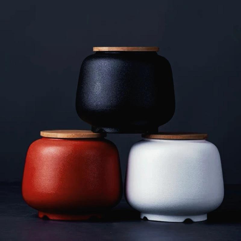 Retro Black Ceramic Tea Pot Sealed Pu'er Tea Container Household Storage Jar Traditional Chinese Tea Set Decor